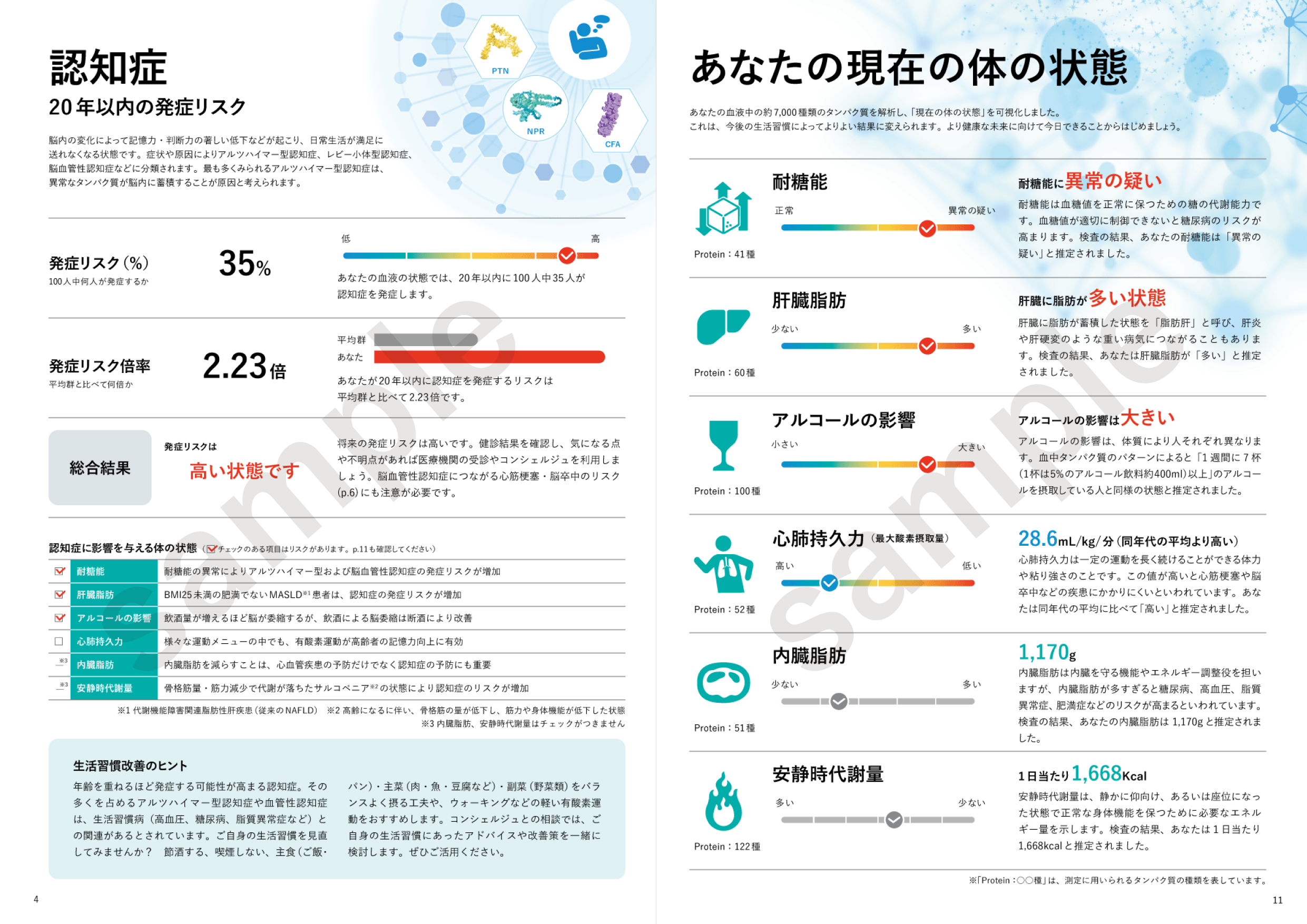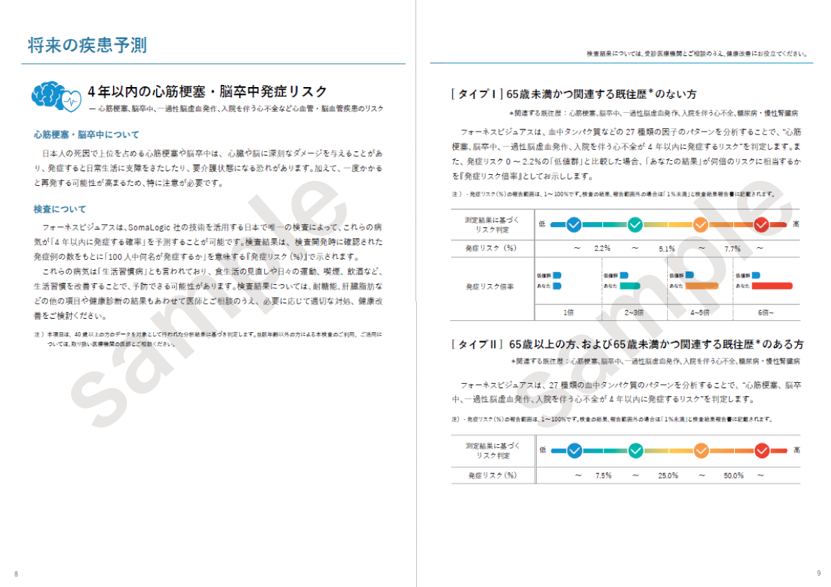 「将来の疾患予測」と「現在の体の状態」を記載した検査結果の報告書です。